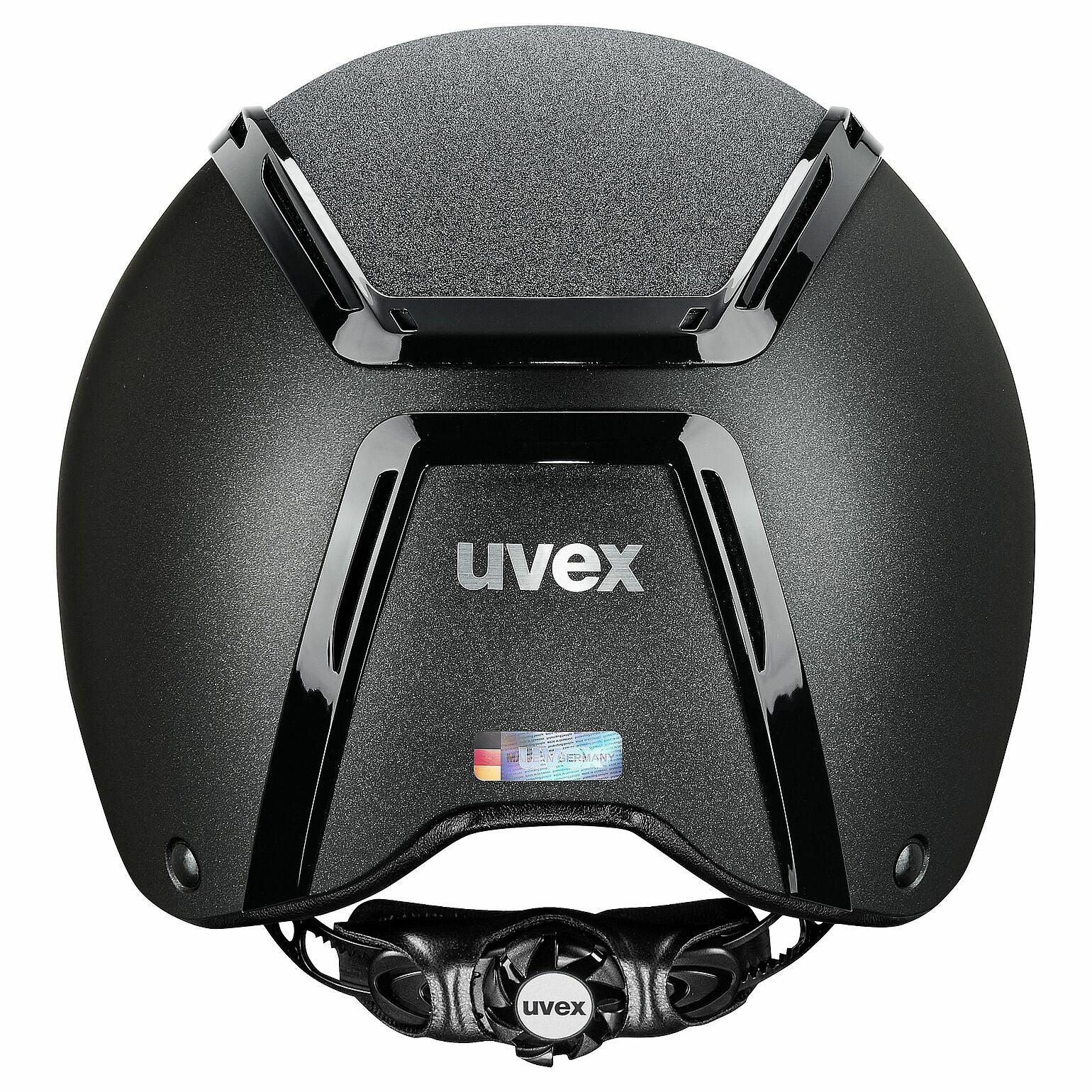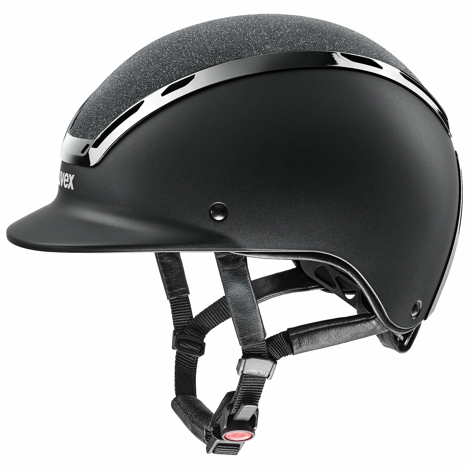 Kraftvoll. Charismatisch. Leistungsfähig. Echte Starqualitäten hat der uvex exxeed starshine. Der Reithelm kombiniert außergewöhnliche Leistung mit modernem, mattem Design. Dezente Eleganz mit präzisen Akzenten aus hochglänzendem Klavierlackrahmen und Glamour Top trifft robuste Hardshell-Technologie mit stabiler Kunststoff-Außenschale und leichtem EPS-Kern. Die sorgt für extreme Schlagfestigkeit. Das uvex 3D-IAS-System garantiert eine ideale Höhen- und Weitenanpassung für jede Kopfgröße. Der schnell bedienbare Gurtbandverteiler sichert die individuelle Passform. Außergewöhnlich auch der Tragekomfort: Die großen Luftkanäle bieten optimales Klimamanagement. Hochwertige Kunstleder-Gurtbandbezüge schmiegen sich sanft an das Gesicht an. Der uvex monomatic Komfortverschluss lässt sich mit Handschuhen mühelos bedienen. uvex exxeed starshine – Akzente setzen.